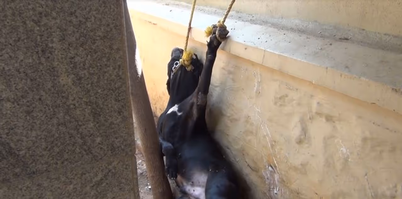 காவல்துறையினர் கயிறு மூலம் நாயை பிடிக்கும் பணியில் ஈடுபட்டனர். அப்போது நாயின் கழுத்தில் கயிறு இறுகியதில் அது பரிதாபமாக உயிரிழந்தது.