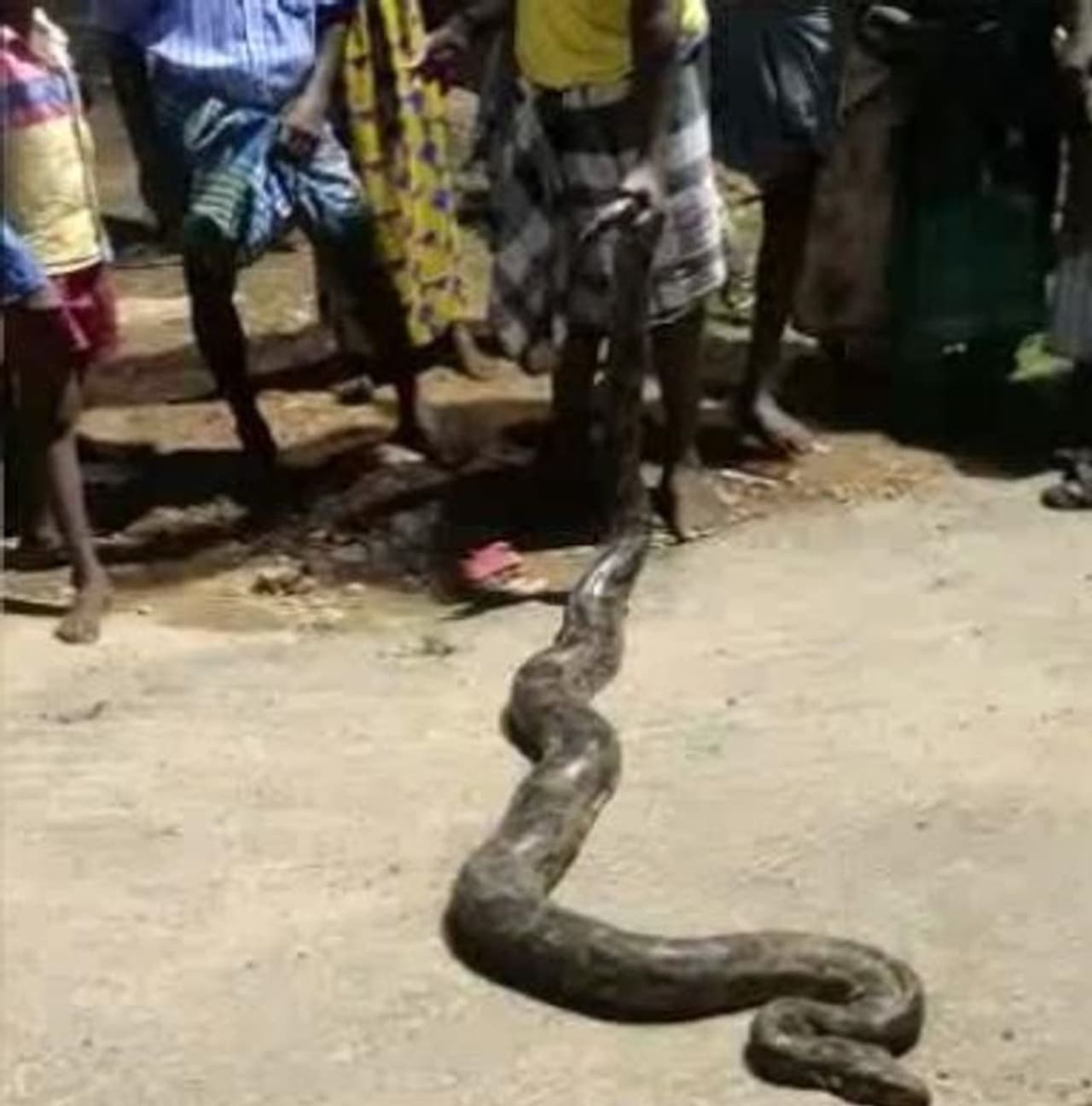 அங்கே 10 அடி நீளத்தில் பெரிய மலைப்பாம்பு நெளிந்து கொண்டிருந்திருக்கிறது. அதன் அருகே மயில் ஒன்று சுருண்டு கிடந்தது. மலைப்பாம்பு தனது உடலால் மயிலை சுற்றிவளைத்து விழுங்க முயற்சித்திருக்கிறது. ஆனால் மயிலும் விடாமல் மலைப்பாம்பை கொத்தி உயிருக்கு போராடி சண்டையிட்டு இருந்துள்ளது.