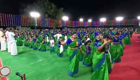 தாராபுரம் அருகே மணலூர் கிராமத்தில் சிறுவர், சிறுமியர் என 400-க்கும் மேற்பட்ட கும்மியாட்டக் குழுவினர் நடனம் ஆடி அசத்தல்.