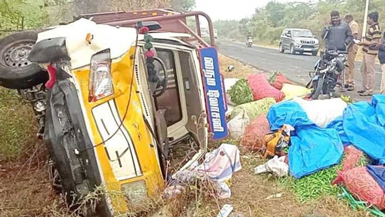 திண்டுக்கல் மாவட்டம் ஒட்டன்சத்திரத்தில் இருந்து காய்கறிகள் ஏற்றிக்கொண்டு கோவைக்கு இன்று அதிகாலை சரக்கு வேன் ஒன்று சென்றுக்கொண்டிருந்தது. பல்லடம் அருகே புத்தரச்சல் பகுதியில் சென்றுக்கொண்டிருந்த போது திடீரென ஓட்டுநரின் கட்டுப்பாட்டை இழந்த வேன் தாறுமாறாக சாலையில் ஓடியது. பின்னர், எதிரே வந்த இருசக்கர வாகனங்கள் மீது மோதி சாலையோர பள்ளத்தில் கவிழ்ந்தது.