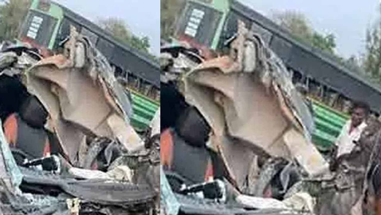 திருவண்ணாமலை மாவட்டம் போளூரை அடுத்த வசூர் கிராமத்தைச் சேர்ந்த வடிவேல் (32), சங்கர் (35). ஆனந்தன் (45), சிவராமன் (32) பிரகாஷ் (37) உள்ளிட்ட 5 பேர் ஊர் திருவிழாவை முன்னிட்டு சேத்துப்பட்டுக்கு காரில் வந்து பட்டாசுகள் வாங்கிக் கொண்டு நேற்று இரவு ஊர் திரும்பிக்கொண்டிருந்தனர். அப்போது போளூரில் இருந்து சென்னைக்கு சென்றுக்கொண்டிருந்த அரசு பேருந்து மீது எதிர்பாராத விதமாக கார் நேருக்கு நேர் மோதியது. இதில், கார் அப்பளம் போல் நொறுங்கியது.