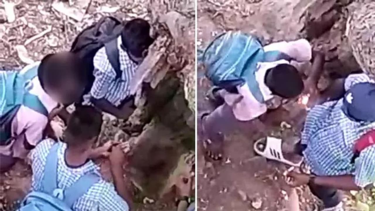 திருவண்ணாமலை அருகே அரசு பள்ளி மாணவர்கள் மரத்தடி ஒன்றில் வைத்து கஞ்சாவை எடுத்து பிடிக்கும் வீடியோ காட்சிகள் இணையத்தில் வைரலாகி பெரும் பரபரப்பை ஏற்படுத்தி உள்ளது.