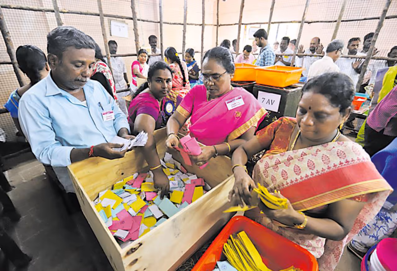 தமிழகத்தில் ஊரக பகுதிகளுக்கான உள்ளாட்சி தேர்தல் இரண்டு கட்டங்களாக 27 மற்றும் 30 ஆகிய தேதிகளில் நடைபெற்றது. வாக்குப்பதிவுக்கு பிறகு வாக்குப்பெட்டிகள் சீல் வைக்கப்பட்டு துப்பாக்கி ஏந்திய போலீஸ் பாதுகாப்பது போடப்பட்டது. தேர்தலில் மக்கள் அளித்த வாக்குகள் ஜனவரி 2ம் தேதி எண்ணப்படுவதாக தேர்தல் ஆணையம் அறிவித்திருந்தது. அதன்படி நேற்று காலை 8 மணி முதல் வாக்கு எண்ணிக்கை தொடங்கி நடைபெற்று வருகிறது.