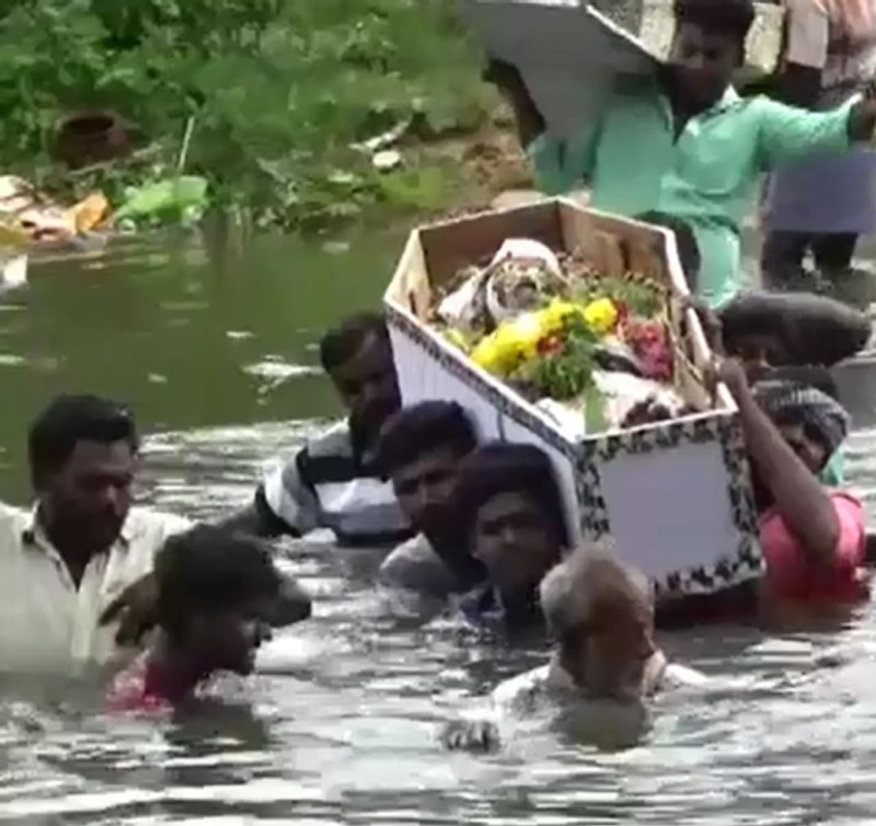 இதனிடையே நேற்று கிராமத்தைச் சேர்ந்த முதியவர் ஒருவர் உயிரிழந்துள்ளார். அவருக்கு இறுதிச்சடங்குகள் செய்வதற்காக கழுத்தளவு தண்ணீரில் உடலை சுமந்து சென்ற அவலம் நிகழ்ந்துள்ளது. இதுதொடர்பான புகைப்படங்கள் சமூக வலைத்தளங்களில் தற்போது வேகமாக பரவி வருகின்றன. பாலம் அமைத்து தர 40 ஆண்டுகளாக கோரிக்கை விடுத்தும், எந்த பயனும் ஏற்படவில்லை என அப்பகுதி மக்கள் வேதனை தெரிவிக்கின்றனர். இனியாவது பாலம் கட்ட சம்பந்தப்பட்ட அதிகாரிகள் நடவடிக்கை எடுக்க வேண்டும் என அவர்கள் கோரிக்கை விடுத்துள்ளனர்.
