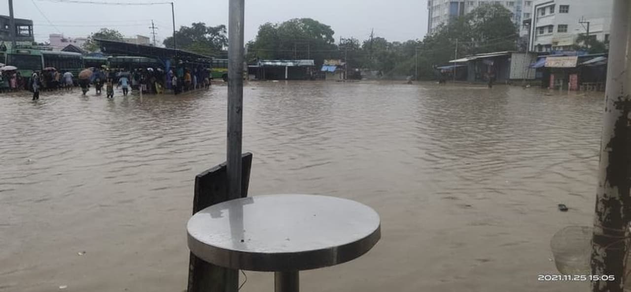 தொடர் மழையினால், காயல்பட்டினம் நகர் பகுதி முழுவதும் வெள்ளக்காடாக காட்சியளிக்கிறது. ஸ்ரீவைகுண்டம், குலசேகரபட்டினம் உள்ளிட்ட பகுதியில் கொட்டி தீர்த்த கனமழையால், பல இடங்களில் குடியுருப்பு பகுதிகள் மழை வெள்ளம் சூழ்ந்துள்ளது. மேலும் தூத்துக்குடி நகரில் பெய்த மழையால், தற்காலிக பேருந்து நிலையம், தருவை விளையாட்டு மைதானம் போன்றவை தண்ணீரில் மிதக்கின்றன. தூத்துக்குடி டூவிபுரம், தாளமுத்துநகர், சத்யாநகர், கால்டுவெல் காலனி, உள்ளிட்ட பல பகுதிகளில் வீடுகளுக்குள் மழைநீர் புகுந்ததால் மக்கள் அவதியடைந்துள்ளனர். மேலும், குடியிருப்புகளை சூழந்து மழைநீர் தேங்கி நிற்பதால் மக்கள் வெளியே வர முடியாமல் வீடுகளுக்கு உள்ளே முடங்கினர். சாலைகளில் வெள்ளம் பெருக்கெடுத்ததால் தூத்துக்குடி மாநகர பகுதியில் 3 மணி நேரத்துக்கு மேலாக போக்குவரத்து பாதிக்கப்பட்டது. தூத்துக்குடி ரயில் நிலைய தண்டவாளங்களில் மழைநீர் தேங்கியுள்ளதால், ரயில் போக்குவரத்து பாதிக்கப்பட்டது. மேலும் சென்னையில் இருந்து பகல் 01.50 மணிக்கு தூத்துக்குடி வந்த விமானம், தரையிறங்க முடியாததால் திருச்சி திருப்பி அனுப்பப்பட்டது.
