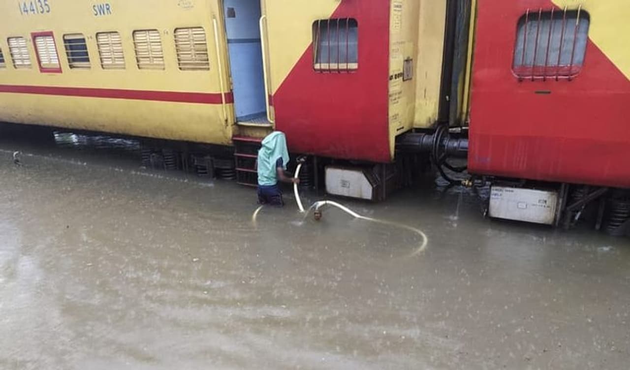 புகழ்பெற்ற திருசெந்தூர் முருகன் கோவில் மழைநீர் புகுந்தது. கோயில் கிரிப்பிரகாரம், சண்முக விலாசம் பகுதிகள் மழைநீரில் மூழ்கின. இந்த பகுதிகளில் இருந்து மழைநீர் கோயிலுக்கு உள்ளேயும் வழிந்தோடியதால் பக்தர்கள் அவதியடைந்தனர். மேலும், கோயில் கடற்கரை பகுதியில் மணல் பரப்பு தெரியாமல் தண்ணீர் தேங்கியது. காயல்பட்டினம், குலசேகரபட்டினம், உடன்குடி, சாத்தான்குளம்,ஸ்ரீவைகுண்டம் உள்ளிட்ட பகுதிகளில் காலை முதல் தொடர்ந்து கனமழை பெய்துவருகிறது. சுமார் 3 மணி நேரத்தில் திருசெந்தூரில் மட்டும் 17 செ.மீ மழை பதிவாகியுள்ளது. இதன் காரணமாக திருச்செந்தூர் நகர் முழுவதும் வெள்ளக்காடாக மாறியுள்ளது. சன்னதி தெரு, மார்க்கெட் பகுதி, போக்குவரத்துக் கழக பனிமனை, பேருந்து நிலையம் உள்ளிட்ட பகுதிகளில் மழை வெள்ளம் குளம் போல தேங்கியுள்ளது. அனைத்து சாலைகளிலும் மழை நீர் ஆறுபோல பெருக்கெடுத்து ஓடுவதால் மக்கள் வெளியில் வரமுடியாத நிலையில் உள்ளனர்.