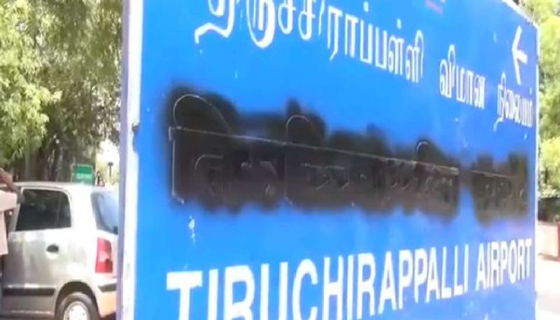 திருச்சி விமான நிலையத்துக்கு வெளியே உள்ள அறிவிப்பு பலகையில் இருந்த இந்தி எழுத்துகளை யாரோ அழித்திருக்கிறார்கள். தலைமை தபால் நிலைய அலுவலகம், பி.எஸ்.என்.எல். அலுவலகங்களிலும் இந்தி எழுத்துகளை கறுப்பு மை பூசி அழிக்கப்பட்டுள்ளது.