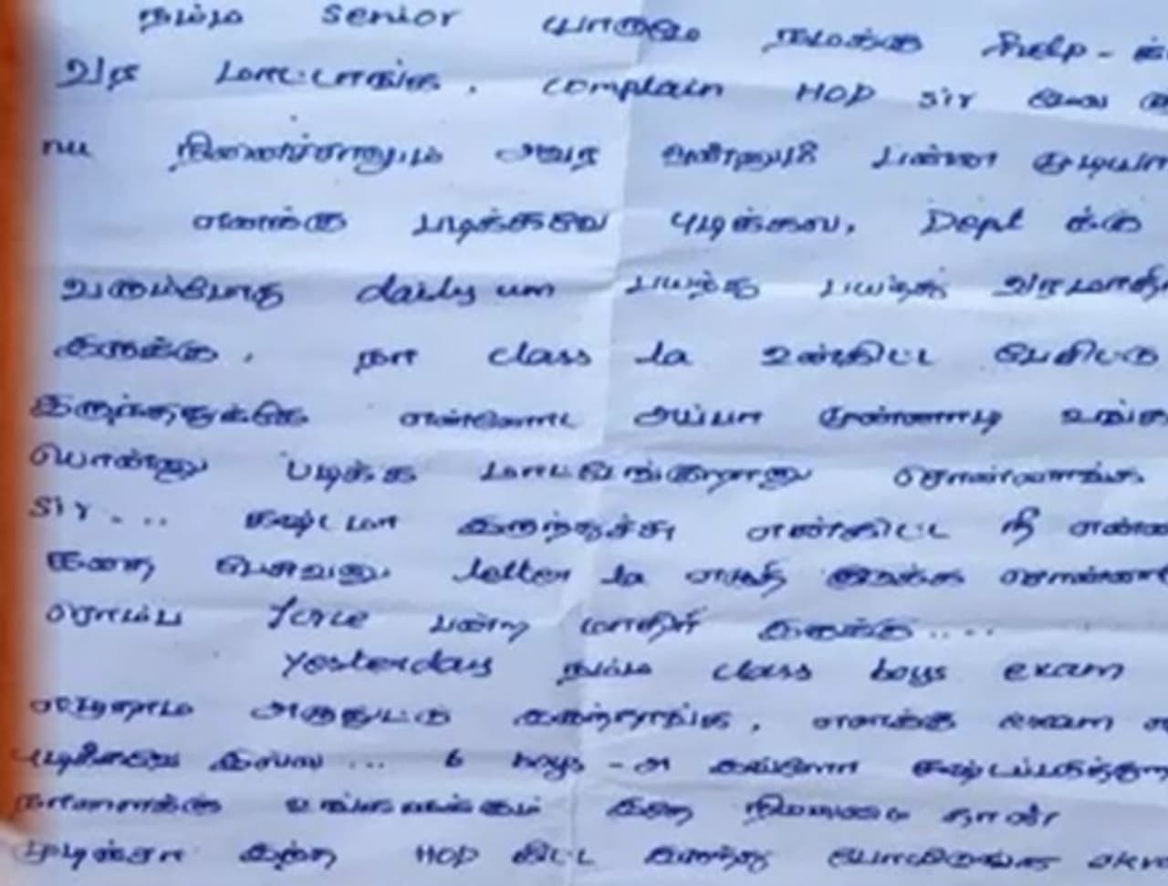 இந்த நிலையில் நேற்று விடுதி அறையில் இருந்த ஜெனிபர், பினாயிலை குடித்து தற்கொலைக்கு முயன்றிருக்கிறார். அதைக்கண்டு அதிர்ச்சியடைந்த அவரது தோழிகள் விடுதி காப்பாளருக்கு தகவல் தெரிவித்து உடனடியாக ஜெனிபரை மீட்டு சிகிச்சைக்காக திருச்சி அரசு மருத்துவமனைக்கு கொண்டு சென்றனர். அங்கு அவருக்கு தீவிர சிகிச்சை அளிக்கப்பட்டு வருகிறது. மாணவியின் அறையில் அவர் எழுதிய கடிதம் ஒன்றும் சிக்கியுள்ளது. அதில் கல்லூரியில் நடந்த சில பிரச்சனைகளை குறிப்பிட்டு ஜெனிபர் எழுதியிருக்கிறார்.