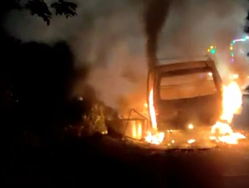 கியாஸ் என்பதால் தீ மளமளவென பற்றி எரிந்து சிறிது நேரத்தில் கார் முற்றிலும் சேதமடைந்தது . சம்பவ இடத்திற்கு தீயணைப்பு வாகனம் வந்து தீயை அணைத்தது.