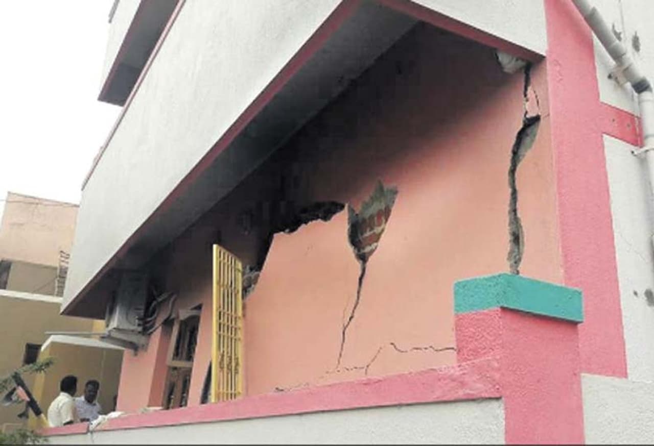 இதை பார்த்ததும் செய்வதறியாது திகைத்த அவர்கள் பின்னர் தீயை அணைத்தனர். அதே போல அவர்களது பக்கத்து வீட்டில் வசிக்கும் ஓய்வு பெற்ற மின்வாரிய பொறியாளர் ரகுபதி(59) என்பவரின் வீட்டின் சுவரிலும் விரிசல் ஏற்பட்டிருந்தது. அந்த வீட்டிலும் ஜன்னல் மற்றும் கண்ணாடிகள் நொறுங்கி கிடந்தன. இதனிடையே இந்த வெடி சத்தம் கேட்டு அக்கம் பக்கத்தினர் திரண்டனர். இதனால் அந்த பகுதியில் பதற்றம் ஏற்பட்டது.