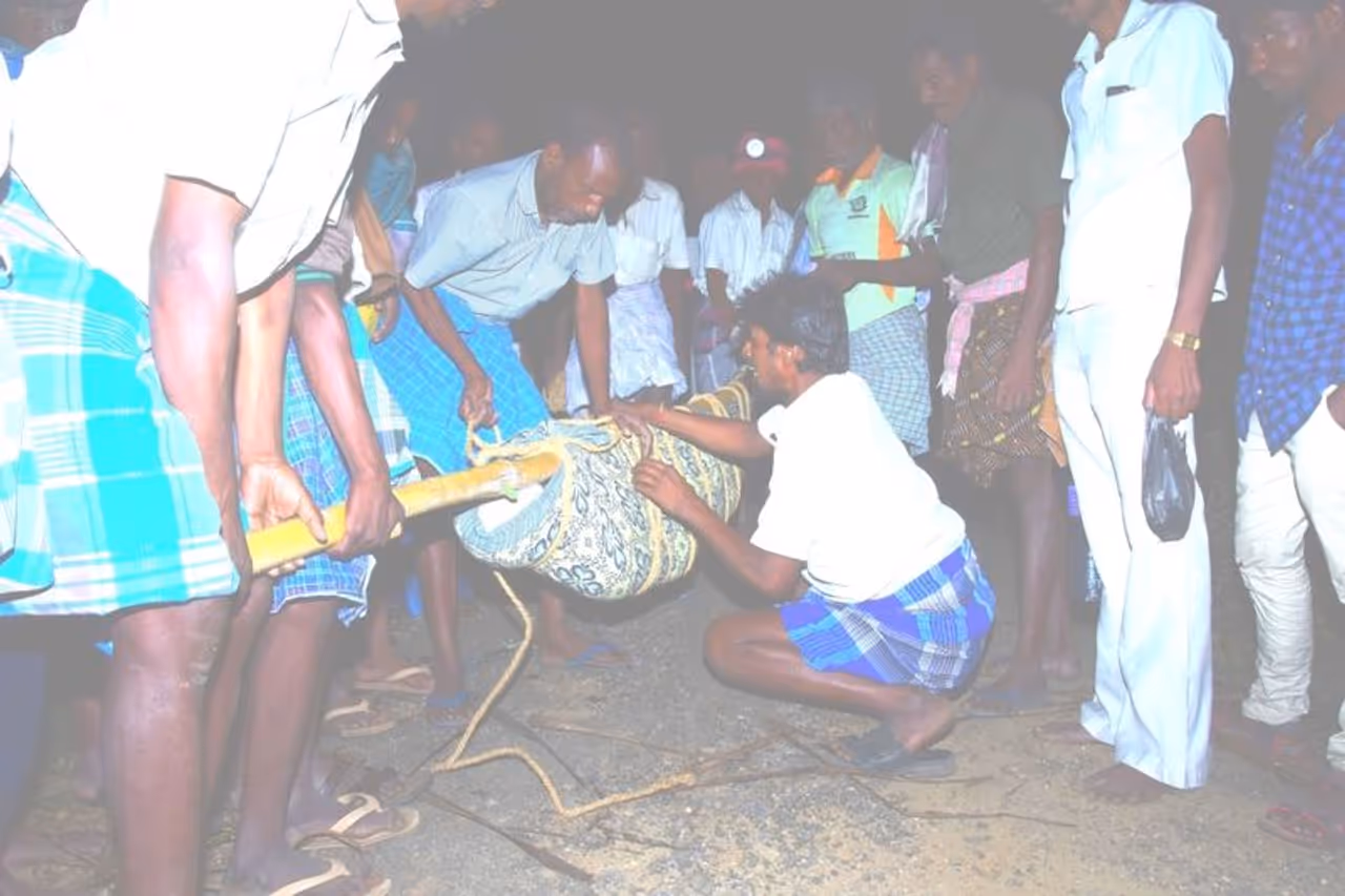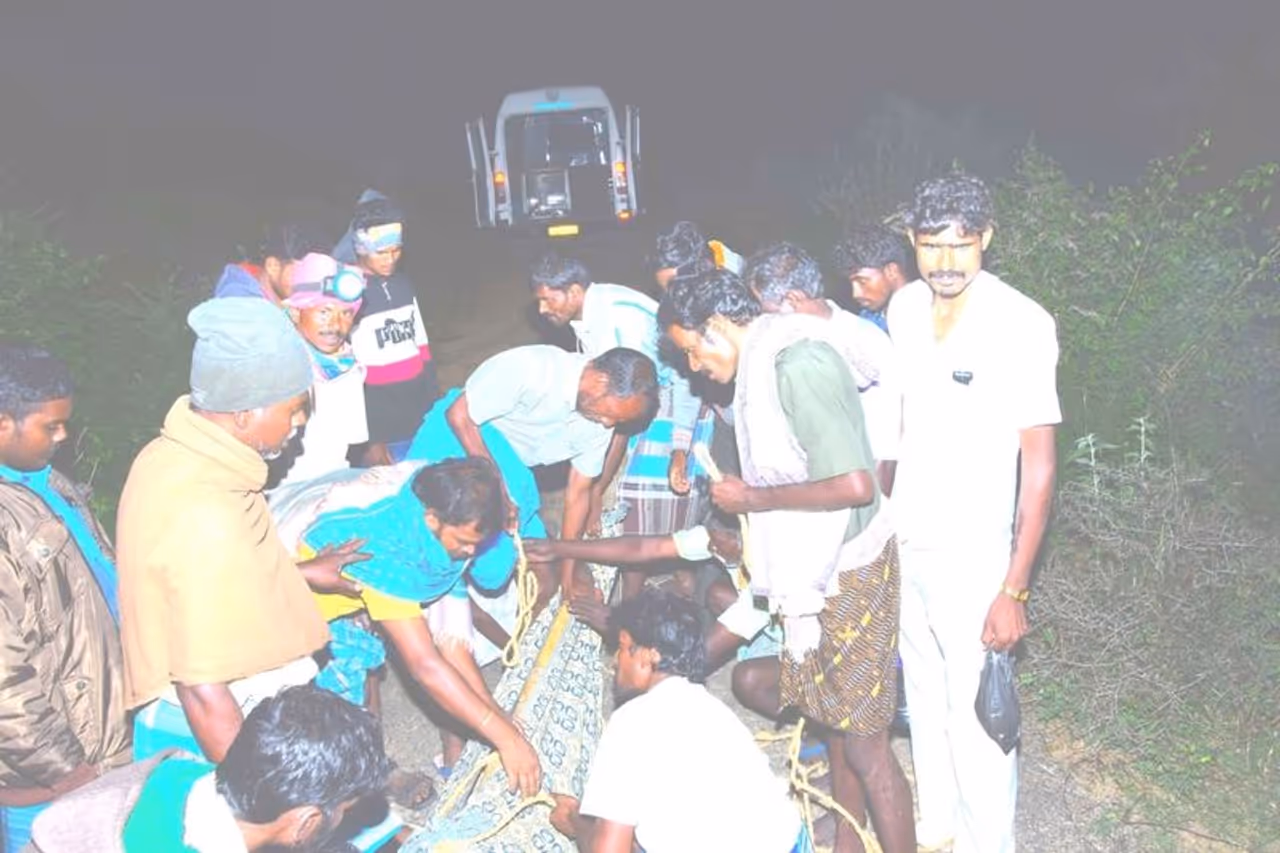 கிராமத்திற்கு செல்வதற்கு முறையான சாலை வசதிகள் இல்லாததால் அதற்கு மேல் ஆம்புலன்ஸ் செல்ல முடியவில்லை. இதனால் முனுசாமியின் உடலை துணியில் சுற்றி மூங்கில் கம்பு ஒன்றில் தொட்டில் உருவாக்கி இரண்டு பேர் சுமந்து சென்றனர். இரவு நேரம் என்பதால் தீபந்தத்தின் உதவியுடன் கிராம மக்கள் மாறிமாறி முனுசாமியின் உடலை சுமந்து நள்ளிரவுக்கு மேல் மலை உச்சிக்கு கொண்டு சென்றனர். இன்று அவருக்கு இறுதிசடங்கள் நடைபெறுகிறது.