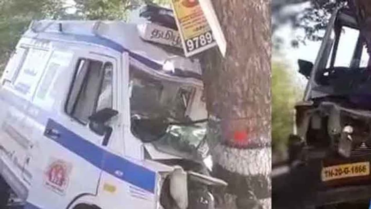 ஆம்புலன்ஸ் ஆலத்தூர் ஏரிக்கரை அருகே வந்த போது திடீரென டயர் வெடித்தது. இதனால், கட்டுப்பாட்டை இழந்த ஆம்புலன்ஸ் சாலையில் தாறுமாறாக ஓடி மரத்தின் மீது மோதி விபத்துக்குள்ளானது. இதில், ஆம்புலன்ஸ் முன்பகுதி அப்பளம் போல் நொறுங்கியது. இந்த விபத்தில் நிறைமாத கர்ப்பிணியான ஜெயலட்சுமி சம்பவ இடத்திலேயே பரிதாபமாக உயிரிழந்தார்.