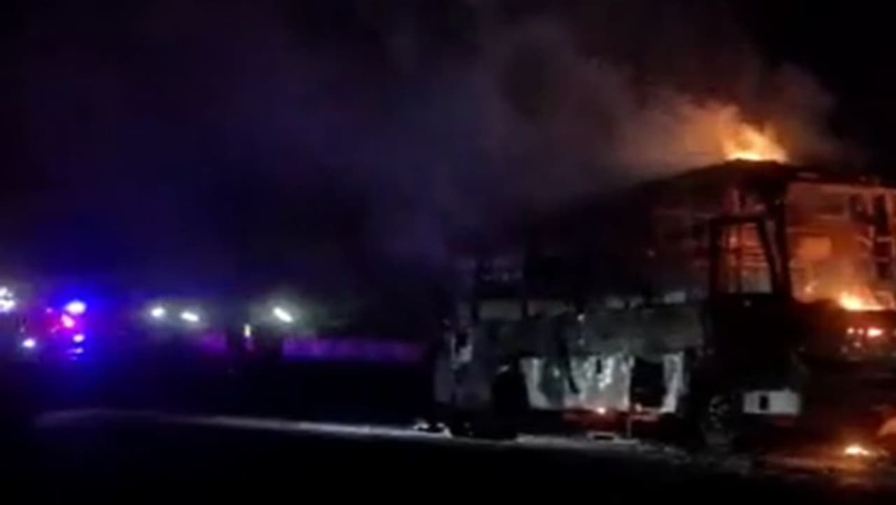 தீயணைப்பு வீரர்கள் வருவதற்குள் தீ அணைத்து இடங்களில் மளமளவென பரவி கொழுந்து விட்டு எறிய தொடங்கியது. பின்னர், நீண்ட நேரம் போராடி தீயணைப்பு வீரர்கள் தீயை கட்டுக்குள் கொண்டு வந்தனர். இந்த சம்பவம் தொடர்பாக போலீசார் வழக்குப்பதிவு செய்து விசாரணை நடத்தி வருகின்றனர். ஓட்டுநரின் முன்னெச்சரிக்கை நடவடிக்கையால் அதிஷ்டவசமாக 17 பேர் உயிர் தப்பினர்.