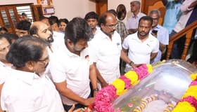 பேரிடர் மேலாண்மைத்துறை அமைச்சர் ராமச்சந்திரனின் தாயார் மறைவுக்கு அமைச்சர்கள், அரசியல் கட்சி தலைவர்கள் நேரில் அஞ்சலி செலுத்தி வருகின்றனர்.