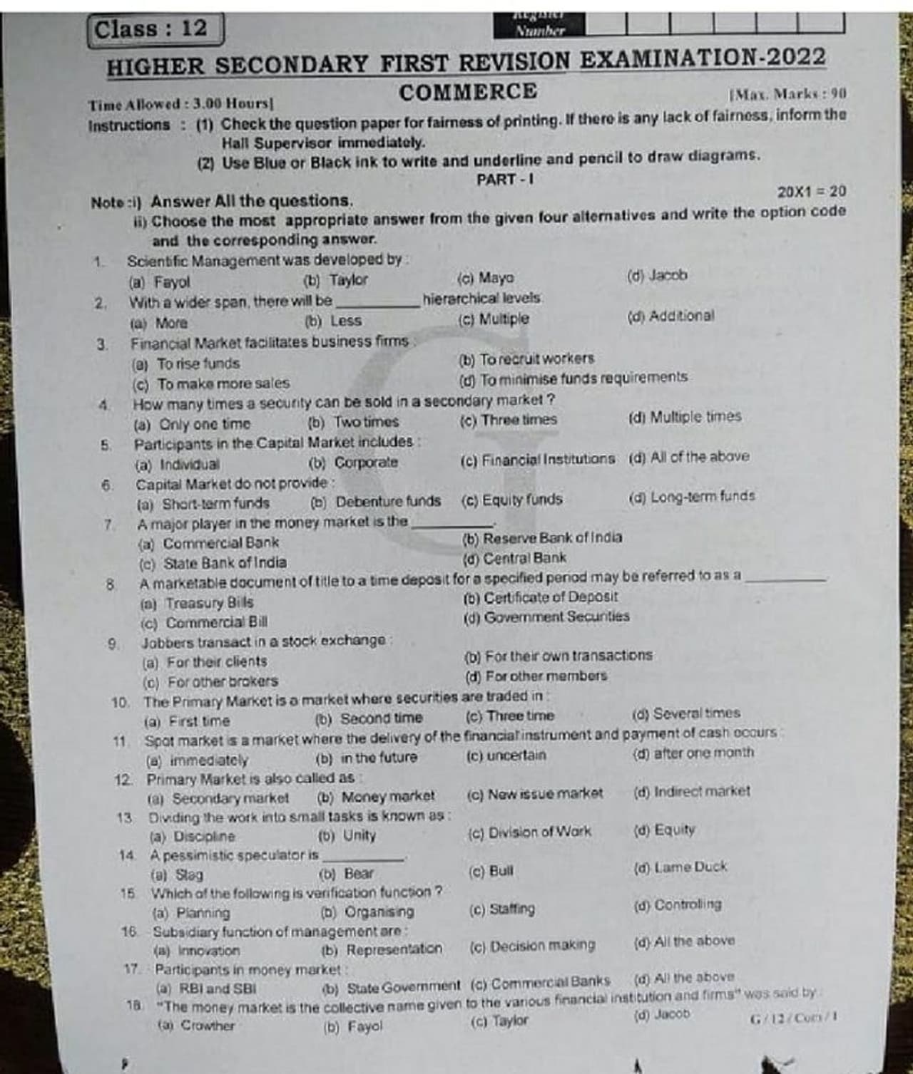இன்று பிற்பகல் இரண்டு மணிக்கு தொடங்கிய 12 ஆம் வகுப்பு வணிகவியல் தேர்வுக்கான தேர்வு தாள் முன்கூட்டியே கசிந்ததாக புகார் எழுந்துள்ளது. நேற்று கணித தேர்வுக்கான வினாத்தாள் கசிந்த நிலையில் இன்று வணிகவியல் வினாத்தாள் கசிந்ததாக சர்ச்சை கிளம்பியுள்ளது.