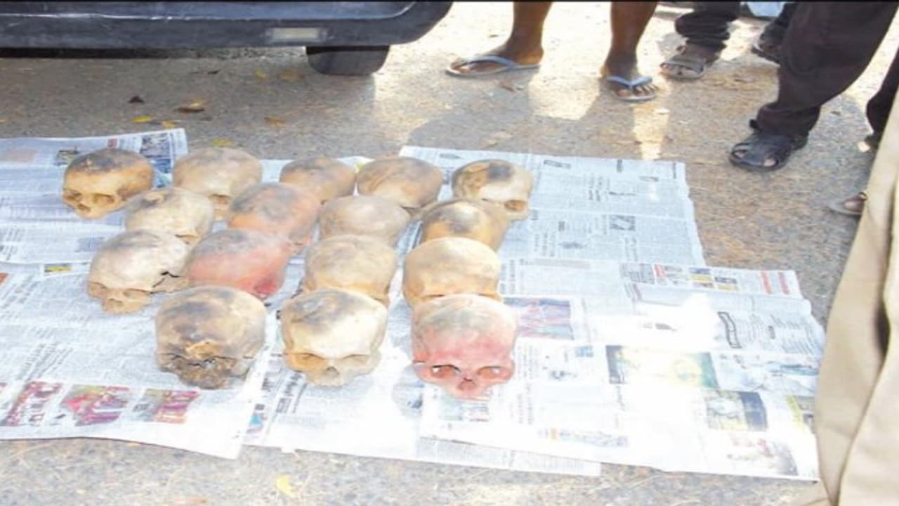 20 மனித மண்டை ஓடுகள், பித்தளை விநாயகர் சிலை, மரத்தால் ஆன காளி சிலை, மண்டை ஓட்டில் இருந்து பிரித்து எடுக்கப்பட்ட எலும்பு துண்டுகள், 10 வசிய மை டப்பாக்கள், 7 வசியப்பொடி டப்பாக்கள், இளம்பெண்ணின் உடலை அடைத்து வைத்திருந்த மரத்தால் ஆன சவப்பெட்டி, இளம்பெண்ணின் உடலை சுற்றி வைக்கப்பட்டிருந்த பாலித்தீன் கவர் துணிகள், தாமிர தகடுகள் உள்ளிட்ட பொருட்கள் மற்றும் விலையுயர்ந்த சொகுசு கார் ஆகியவை நீதிமன்றத்தில் ஒப்படைக்கப்பட்டது.