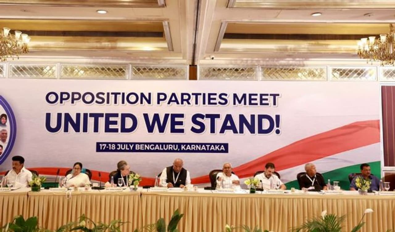 கர்நாடக மாநிலம் பெங்களூரு நகரில் நேற்றும் இன்றும் எதிர்க்கட்சிகளின் கூட்டம் நடந்தது. முதலில் பாட்னாவில் நடந்த கூட்டத்தில் 16 கட்சிகள் கலந்துகொண்ட நிலையில், இந்தக் கூட்டத்தில் 26 கட்சிகள் கலந்துகொண்டன. இதில் மு.க.ஸ்டாலினுடன் வைகோ, திருமாவளவன், ஜவாஹிருல்லா உள்ளிட்ட பிற கூட்டணிக் கட்சிகளும் கலந்துகொண்டன.