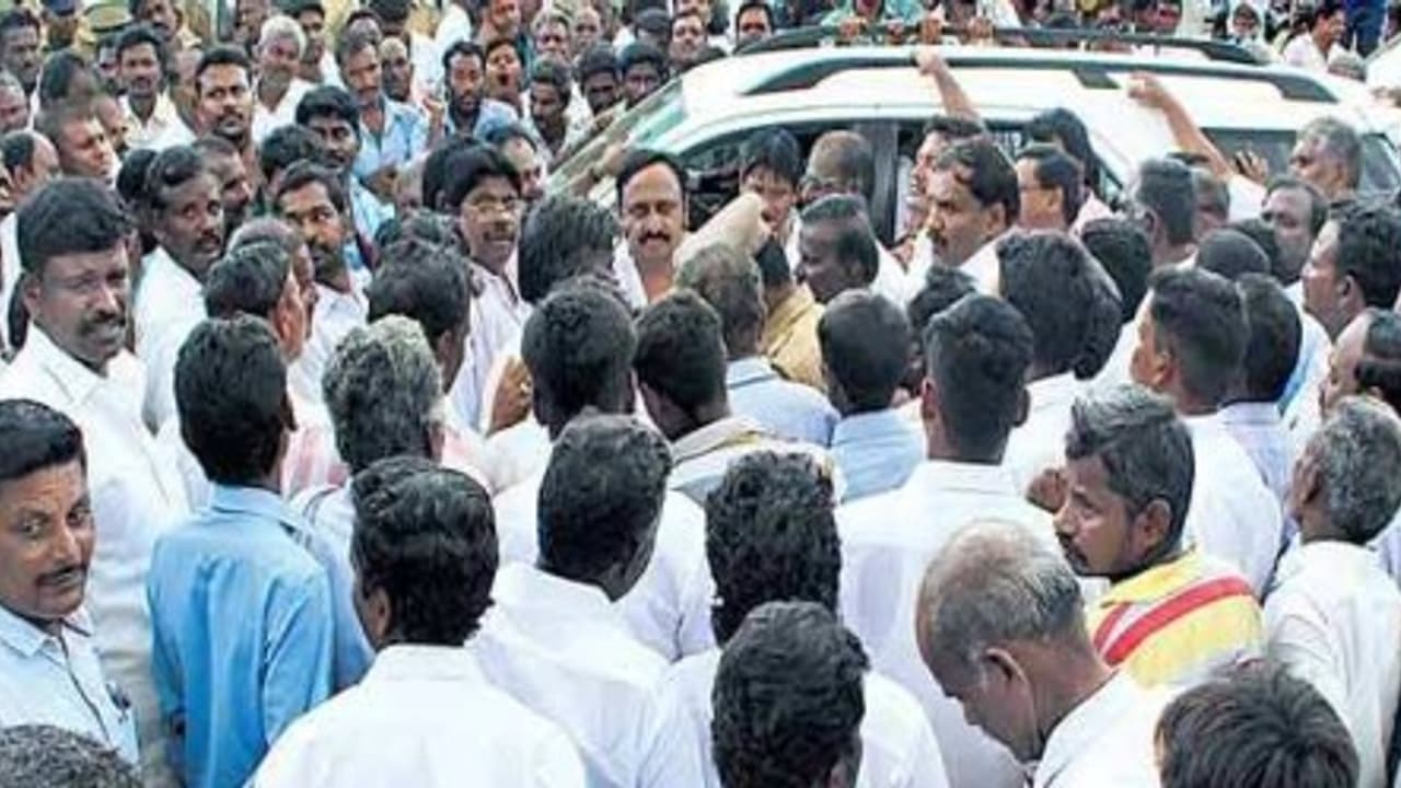 இந்த ஆர்ப்பாட்டத்தின்போது, அங்கு நின்றிருந்த அரசு பேருந்த கண்ணாடியை அவர்கள் உடைத்தனர். இதனால் அந்த பகுதியில் பரபரப்பு ஏற்பட்டுள்ளது. ஆர்ப்பாட்டத்தில் ஈடுபட்ட சுமார் 500 பேரை போலீசார் கைது செய்துள்ளனர்.