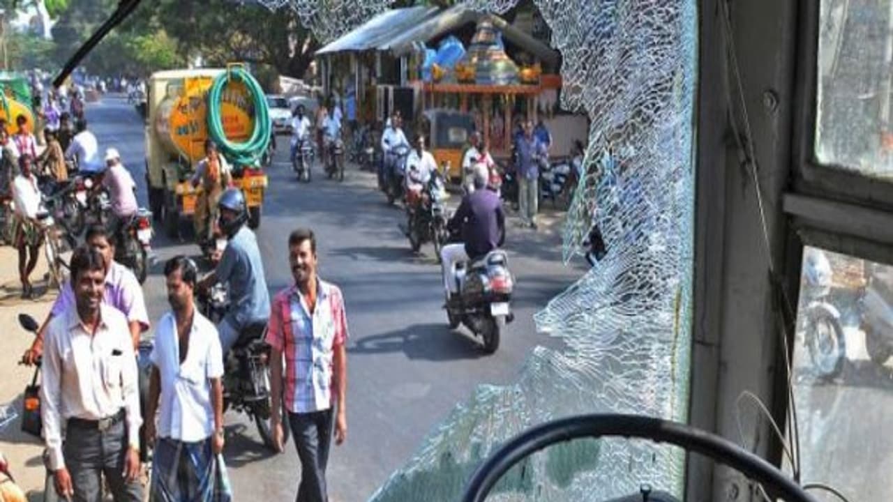 அதேபோல, வேலூர் மாவட்டத்தில் 9 பேருந்துகள் உடைக்கப்பட்டன. காட்பாடியை அடுத்த லத்தேரி வழியாக சென்ற 2 பேருந்துகள் மீது மர்ம நபர்கள் கல்வீசி தாக்குதல் நடத்தினர்.