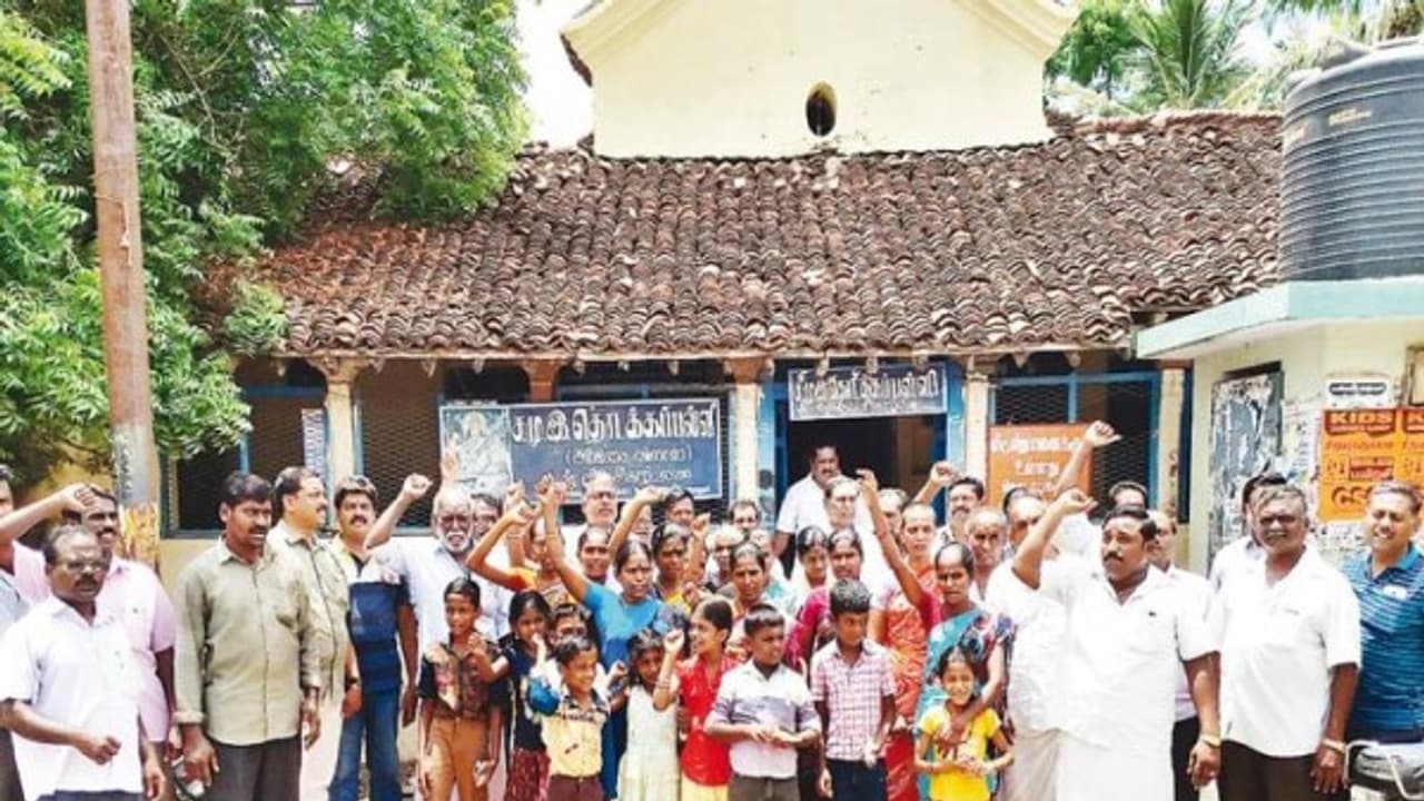 நாகப்பட்டினத்தில், 75 ஆண்டுகால பழமையான பள்ளியை விற்பனை செய்ய எதிர்ப்பு தெரிவித்து பள்ளியை முற்றுகையிட்டு கிராம மக்கள் போராட்டத்தில் ஈடுபட்டனர்.