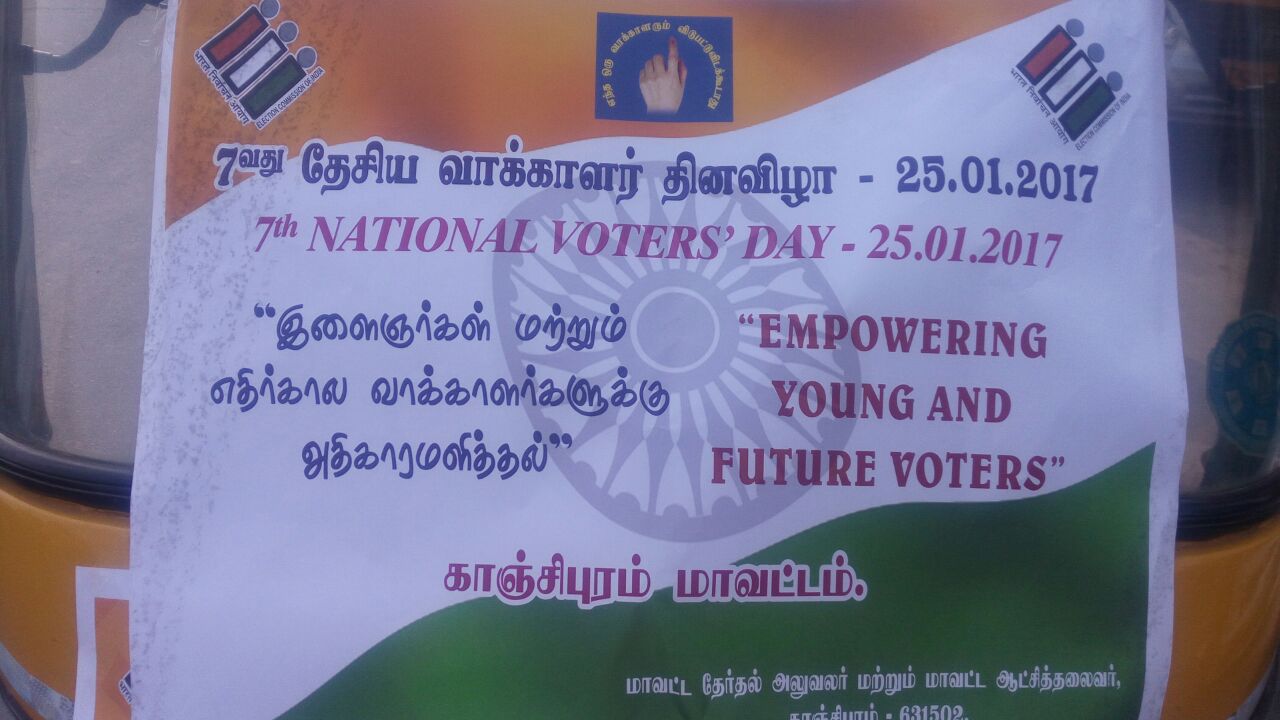 இன்று 7-வது தேசிய வாக்களர் தின விழா என்பதால் அனைத்து இடங்களிலும் பேரணிகள் நடைப்பெற்று வருகிறது. மக்களுக்கு வாக்களிப்பதன் முக்கியத்துவத்தையும், அனைவரையும் வாக்களிக்க வேண்டும் என்று உணர்த்தவுமே இந்த பேரணிகள் நடைப்பெற்று வருகின்றன.