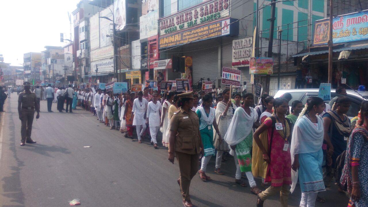 இந்த பேரணியில் 5000-க்கும் மேற்ப்பட்ட பள்ளி மற்றும் கல்லூரி மாணவ மாணவியர்கள் கலந்து கொண்டனர். இதேபோன்று பேரணிகள் காஞ்சிபுரத்தில் 13 இடங்களில் துவங்கப்பட்டு ஏராளமானோர் கலந்து கொள்கின்றனர்.