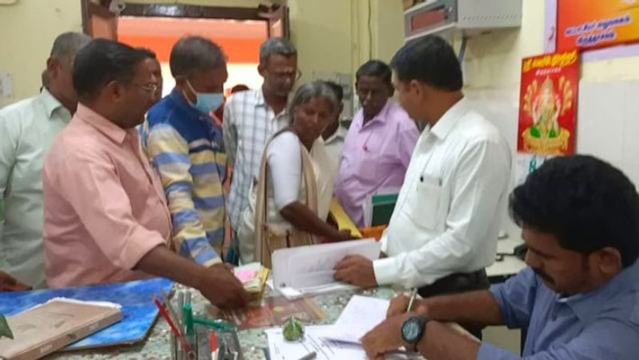 இதனால் தன்னை ஏமாற்றி பட்டா மாற்றி விட்டதாக கூறி 60 வயது உடைய தெய்வநாயகி, பல வருடங்களாக பட்டா மாற்றுவதற்காக, சம்பந்தப்பட்ட அதிகாரிகளுக்கு, மனுக்கள் அளித்து போராடி வருகிறார். இந்நிலையில் விருதாச்சலம் வருவாய் வட்டாட்சியர் அலுவலகத்தில் நடைபெற்றுவரும் ஜமாபந்தி நிகழ்ச்சிக்கு அந்த 60 வயது மூதாட்டியான தெய்வநாயகி, திடீரென அதிகாரிகள் பட்டா மாற்றம் செய்யாமல் ஒருதலை பட்சமாக செயல்படுவதாகவும், சிறுவரப்பூர் கிராமத்தின் கிராம நிர்வாக அலுவலர் 30 ஆயிரம் லஞ்சம் கேட்பதாகவும் ஆவேசமாக தலையில் அடித்துக் கொண்டு, அழுதுகொண்டே கூச்சலிட்டார்.