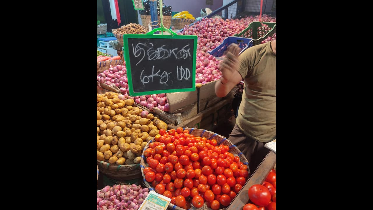 சென்னை சென்னை கோயம்பேடு காய்கறி சந்தையில் பெரிய வெங்காயம் ஒரு கிலோ 30 முதல் 50 ரூபாய்க்கும், சின்ன வெங்காயம் ஒரு கிலோ 60 ரூபாய்க்கும், தக்காளி ஒரு கிலோ 15 முதல் 25 ரூபாய்க்கும், பச்சை மிளகாய் ஒரு கிலோ 30 ரூபாய்க்கும், பீட்ரூட் ஒரு கிலோ 45 ரூபாய்க்கும், உருளைகிழங்கு ஒரு கிலோ 40 முதல் 50 ரூபாய்க்கும், வாழைப்பூ ஒரு கிலோ 25 ரூபாய்க்கும், குடை மிளகாய் ஒரு கிலோ 40 ரூபாய்க்கும், பாகற்காய் ஒரு கிலோ 40 ரூபாய்க்கும் விற்பனை செய்யப்படுகிறது.