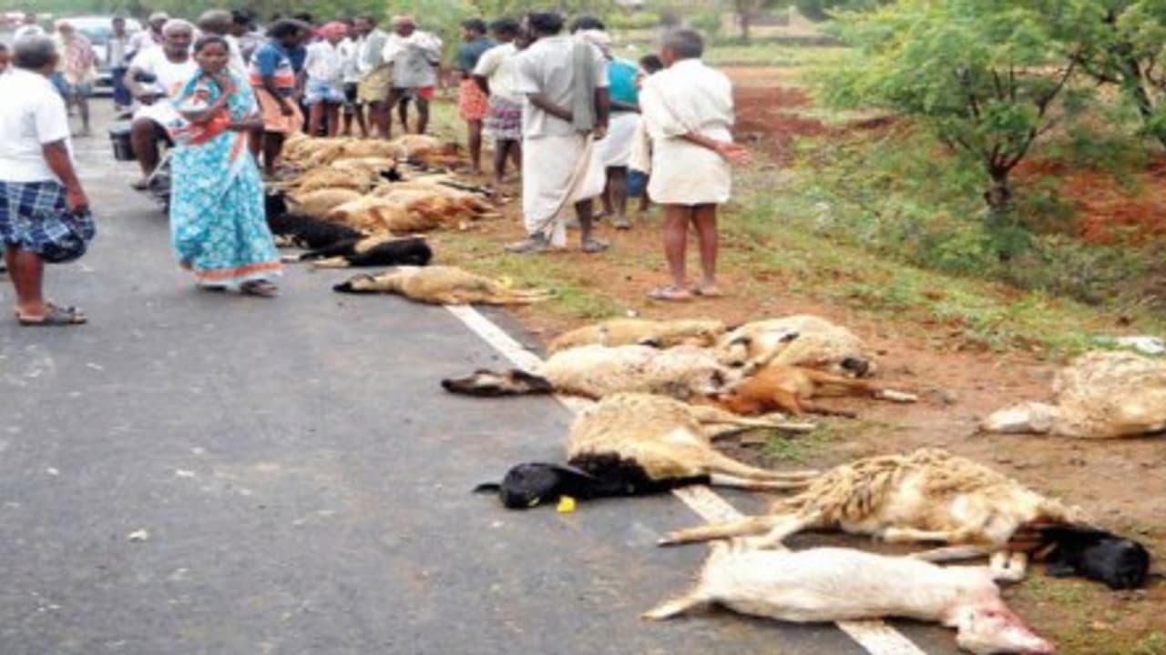 இதைப் பார்த்த கருப்பணன், நாகராஜ், செல்வம் ஆகியோர் சுதாரித்துக்கொண்டு அங்கிருந்து விலகி ஓடினர். இதனால், அவர்கள் மீது வேன் மோதப்படாமல் தப்பித்தனர். ஆனால், இந்த விபத்தில் 34 ஆடுகள் சம்பவ இடத்திலேயே மடிந்தன. 16 ஆடுகளுக்கு பலத்த காயம் ஏற்பட்டது.