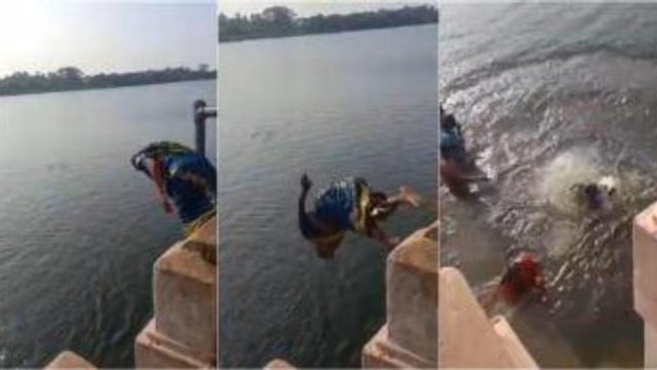வயதான பாட்டி ஒருவர் ஆற்றில் மேலிருந்து குதிக்கும் வீடியோ சமூக வலைத்தளங்களில் வைரலாகி வருகிறது.