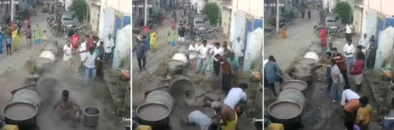 சூடான கூழ் அண்டாவில் விழுந்த இளைஞர்