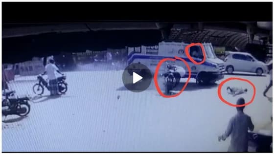 ஆம்புலன்ஸ் மோதி அதிர்ஷ்டவசமாக நூலிழையில் உயிர் தப்பிய.. வாகன ஓட்டியின் பரபரப்பு சிசிடிவி காட்சி...