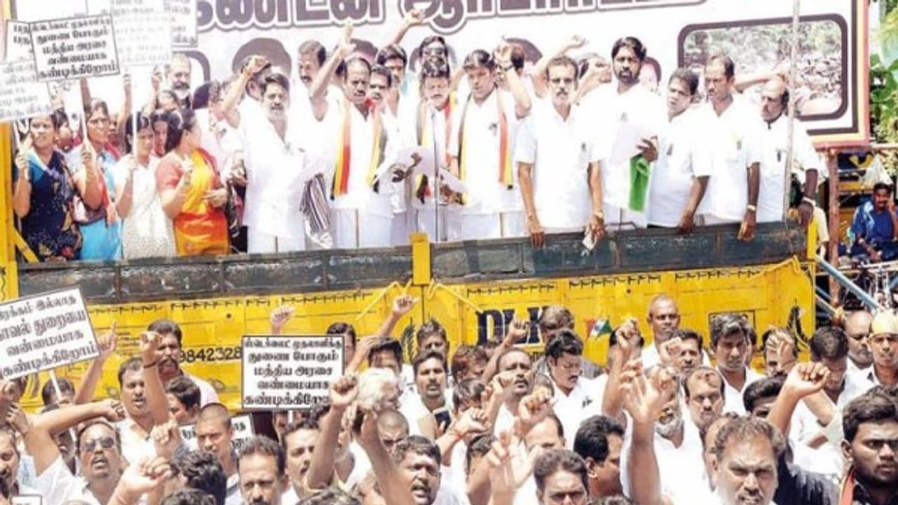 துப்பாக்கி சூடு சம்பவத்துக்கு பொறுப்பேற்று எடப்பாடி பழனிசாமி அரசு பதவி விலக வேண்டும்" உள்ளிட்ட முழக்கங்கள் எழுப்பப்பட்டன.