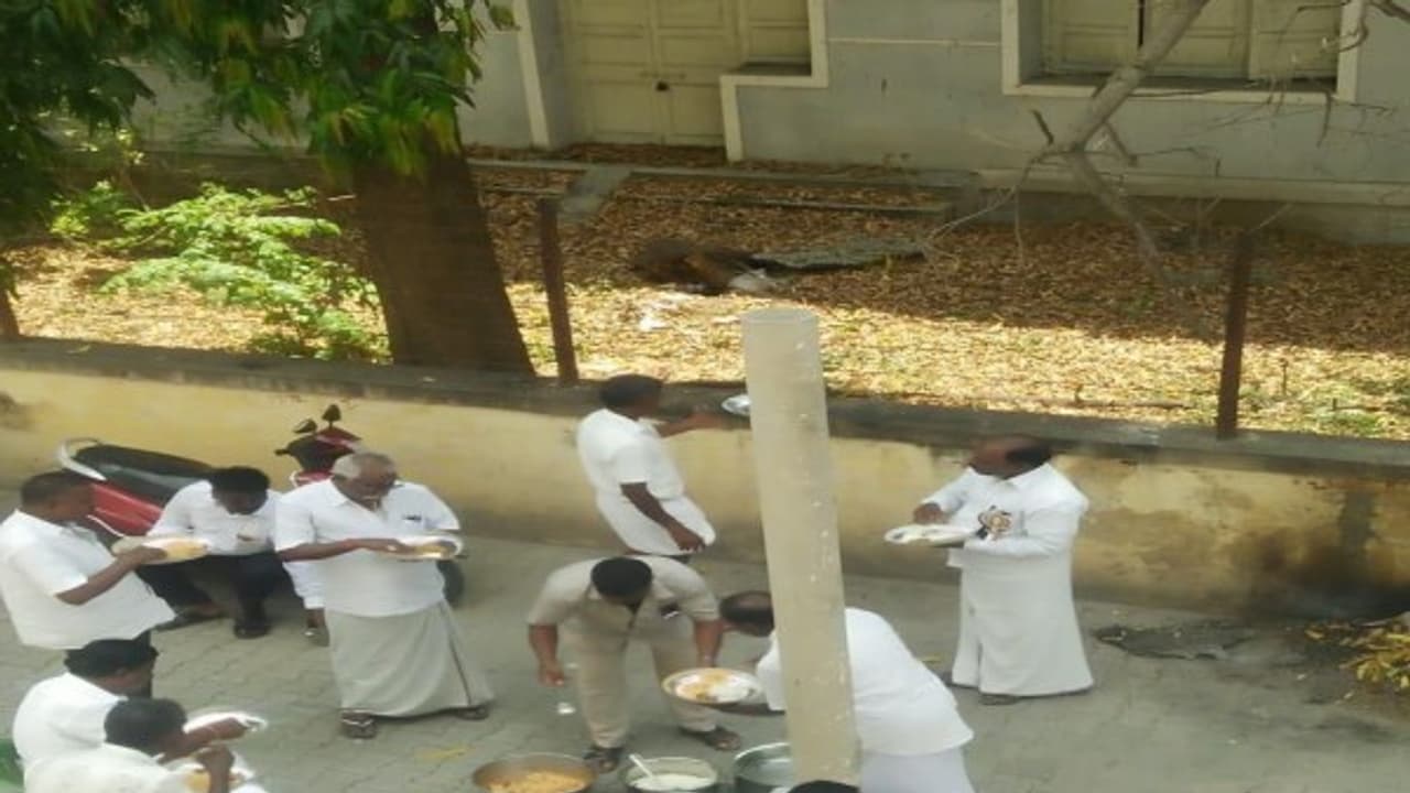 இந்நிலையில்,வேலூரில் நடைப்பெற்று வரும் போராட்டத்தின் இடையே மதிய உணவு வேளையின் போது, நிர்வாகிகள் பலரும் ஒவ்வொருவராக அண்ணா கலை அரங்கத்திற்கு பின்புறம் சென்று,ஏற்கனவே தயார் நிலையில் வைக்கப் பட்டு உள்ள அறுசுவை உணவை உண்டனர்
