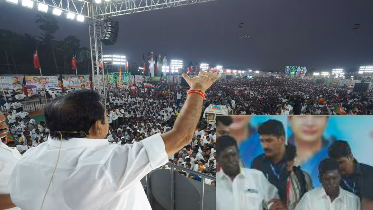 அந்த வகையில் திருவள்ளூர் மாவட்டம் கும்மிடிப்பூண்டியில் இபிஎஸ் இன்று அதிமுக தொண்டர்கள் மற்றும் மக்கள் மத்தியில் தீவிர பிரசாரத்தில் ஈடுபட்டுக் கொண்டிருந்தார். இபிஎஸ் பிரசார வாகனத்தில் நின்றபடி பேசிக் கொண்டிருந்த நிலையில், அவருக்கு பக்கத்தில் முன்னாள் அமைச்சர் ரமணா, திருவள்ளூர் வடக்கு மாவட்ட செயலாளர் சிறுணியம் பலராமன், இபிஎஸ் பாதுகாவலர்கள் ஆகியோர் அருகில் நின்று கொண்டிருந்தனர்.