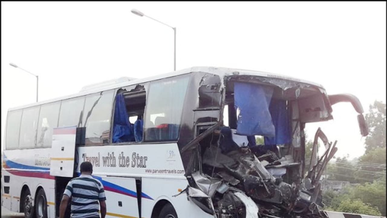 அப்போது, பேருந்துக்கு முன்னால் லாரி ஒன்று சென்றது. திடீரென ஆம்னி பேருந்து, லாரியின் பின்பக்கத்தில் பயங்கரமாக மோதியது. இதில் பேருந்தின் முன்பகுதி அப்பளம்போல நொறுங்கியது.