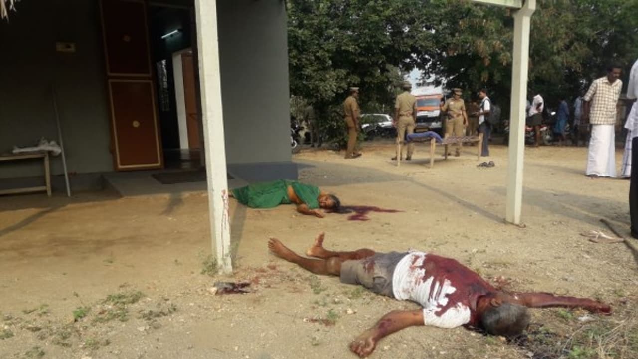 இந்நிலையில் நேற்று இரவு கண்ணம்மாள் வீட்டிகுள் உறங்கி கொண்டிருந்தார். வீட்டின் வெளியில் பழனிசாமி துங்கிங்கொண்டிருந்தார். இரவு மர்ம நபர்கள் முதலில் பழனிசாமியை வெட்டியுள்ளனர். சத்தம் கேட்கவே கண்ணாமாள் வீட்டிற்குள் இருந்து வெளியே வந்தார் அவரையும் கழுத்தை அருத்து கொலை செய்துள்ளனர். காலை 6 மணிக்கு பால் வாங்க சென்ற பால்காரர் கொலை நடத்திருப்பதை பார்த்து அதிர்ச்சியடைந்தார்.