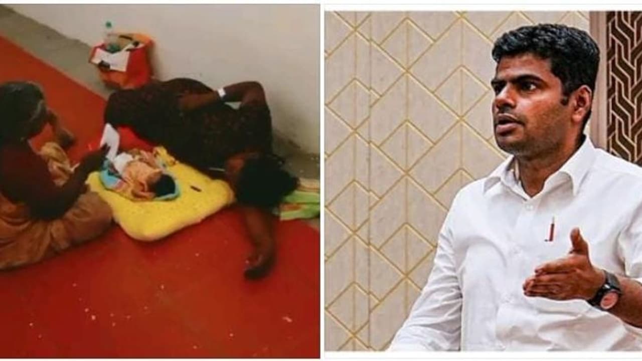 விழுப்புரம் மருத்துவமனையில் அறுவை மூலம் குழந்தை பெற்ற தாயை பச்சிளங் குழந்தையோடு தரையில் படுத்திருப்பது போல காட்சி ஒன்று வெளியாகி பரபரப்பை ஏற்படுத்தியுள்ளது. இது தொடர்பாக பாஜக மாநில தலைவர் அண்ணாமலை வெளியிட்ட அறிக்கையில், விழுப்புரம் மருத்துவக் கல்லூரி மருத்துவமனை மகப்பேறு பிரிவில், படுக்கை வசதி பற்றாக்குறை காரணமாக, அறுவை சிகிட்சை மூலம் பிறந்து மூன்று நாட்களே ஆன பச்சிளங்குழந்தை தன் தாயுடன், எந்த அடிப்படை சுகாதார வசதிகளும் இல்லாமல் வராண்டாவில் படுக்க வைக்கப்பட்டிருக்கும் காட்சி கண்டு மிகுந்த அதிர்ச்சி அடைந்தேன்.