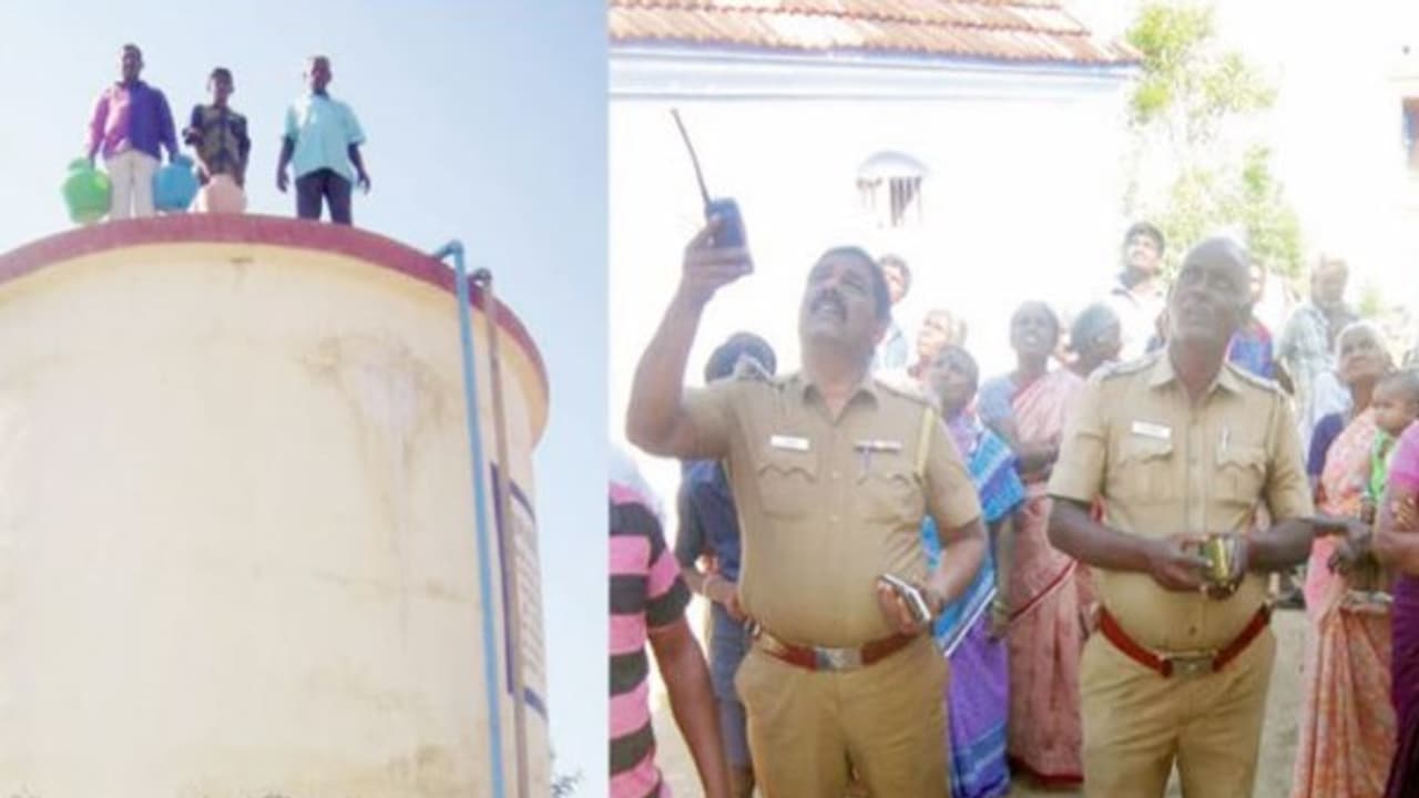 இதனையடுத்து குடிநீர் தொட்டி மேல் ஏறி நின்று தற்கொலை மிரட்டல் விடுத்த மூவரும் கீழே இறங்கிவந்தனர்.