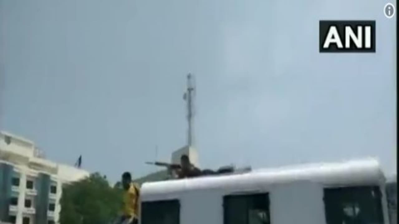 அந்த வீடியோவில் பஸ்-ன் மீது ஏறி நின்று போலீஸ் தனது துப்பாக்கியை சுடுவதற்கு தயார் செய்யும் காட்சிகள் பதிவாகி இருக்கிறது. அதன் பின்னணியில் ஒருத்தனாவது சாகனும் என கீழிருந்து ஒரு குரல் கேட்கிறது. அதன் பிறகு துப்பாக்கி சுடப்படு சத்தம் கேட்கிறது.