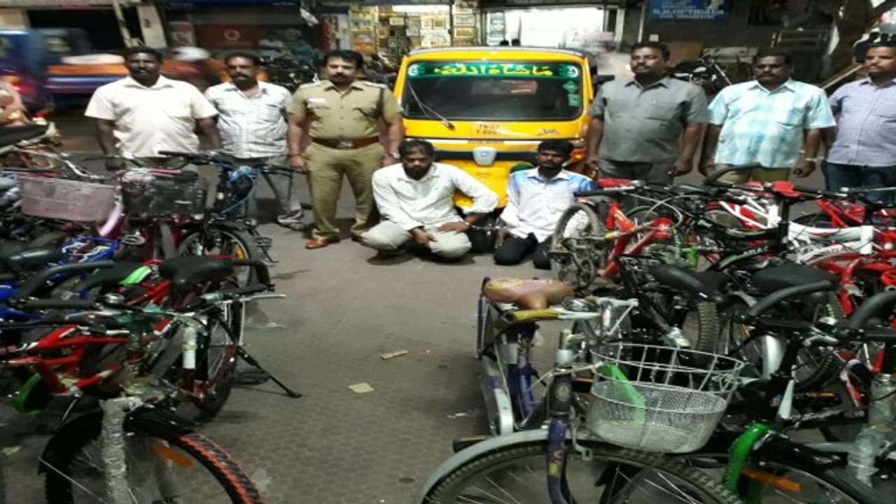 ஆட்டோவில் சவாரி செல்வது போல் சென்று சைக்கிள்கள் குறிப்பாக புதிய விலை உயர்ந்த சைக்கிள்கள் எங்காவது நின்றால் அதை நோட்டமிட்டு திருடுவது இவர்கள் வாடிக்கை. போலீசாரின் அதிரடி நடவடிக்கையால் இந்த பலே ஆசாமிகள் சிக்கியுள்ளனர்.