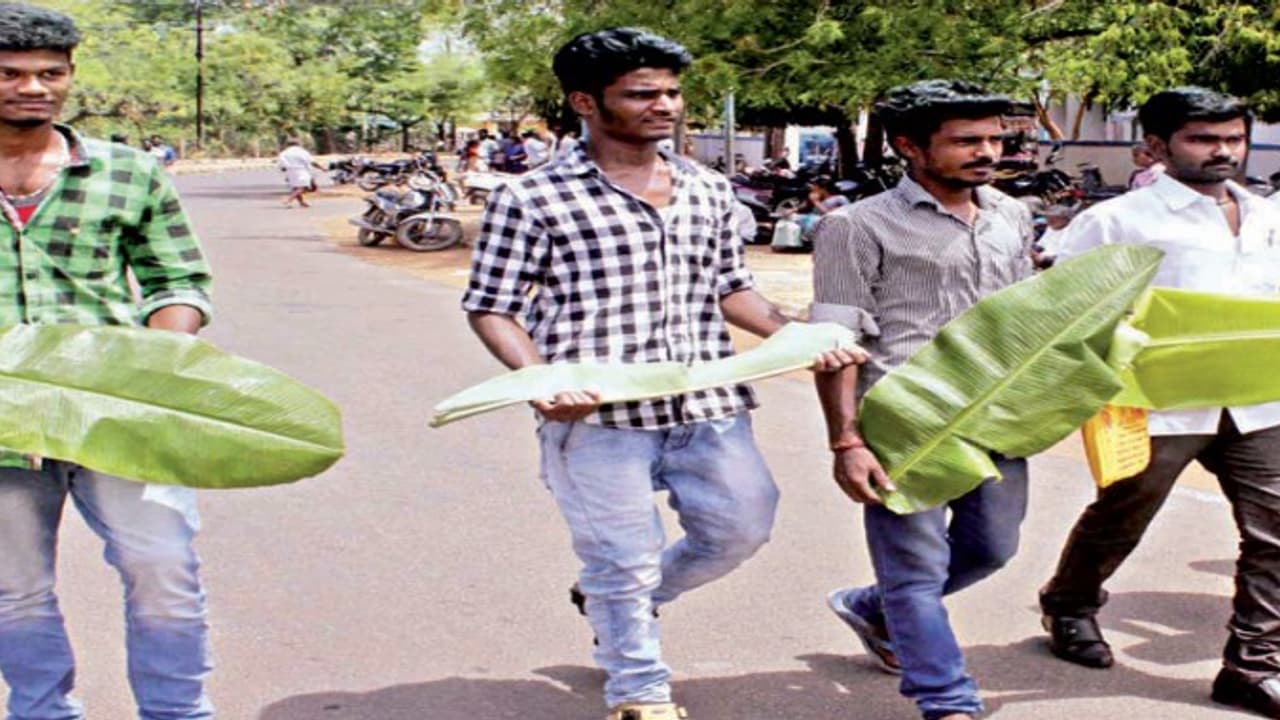 ஓட்டல்களில் பிளாஸ்டிக் பேப்பர்களை தடை செய்து, வாழை இலையில் உணவு பரிமாற வேண்டும் என்று கோரி வாழை இலைகளுடன் வந்து ஆட்சியரிடம் இளைஞர்கள் மனு அளித்தனர்.