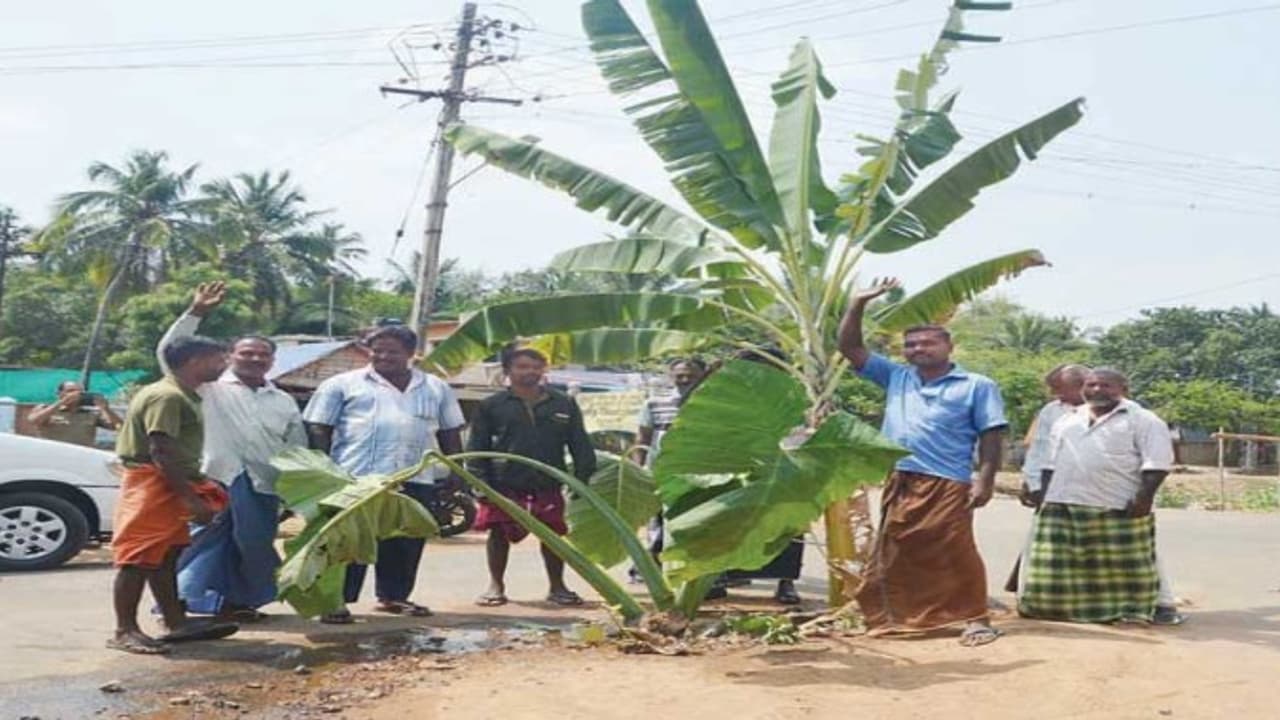 அது என்னவென்றால், “வாழை மற்றும் செடிகளை எடுத்து வந்து, சாலையின் நடுவே ஏற்பட்டுள்ள பள்ளத்தில் நட்டனர்.” இந்த விநோதமான போராட்டத்தை நடத்தி, பள்ளத்தை சீரமைக்க கோரிக்கை விடுத்தனர்.