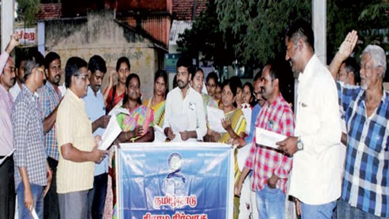 இந்தப் போராட்டத்திற்கு கிராம நிர்வாக அலுவலர்கள் சங்கத்தின் வட்டச் செயலாளர் பார்த்தீபன் தலைமை வகித்தார். வட்டாரத் தலைவர் செந்தில்குமார் முன்னிலை வகித்தார்.
