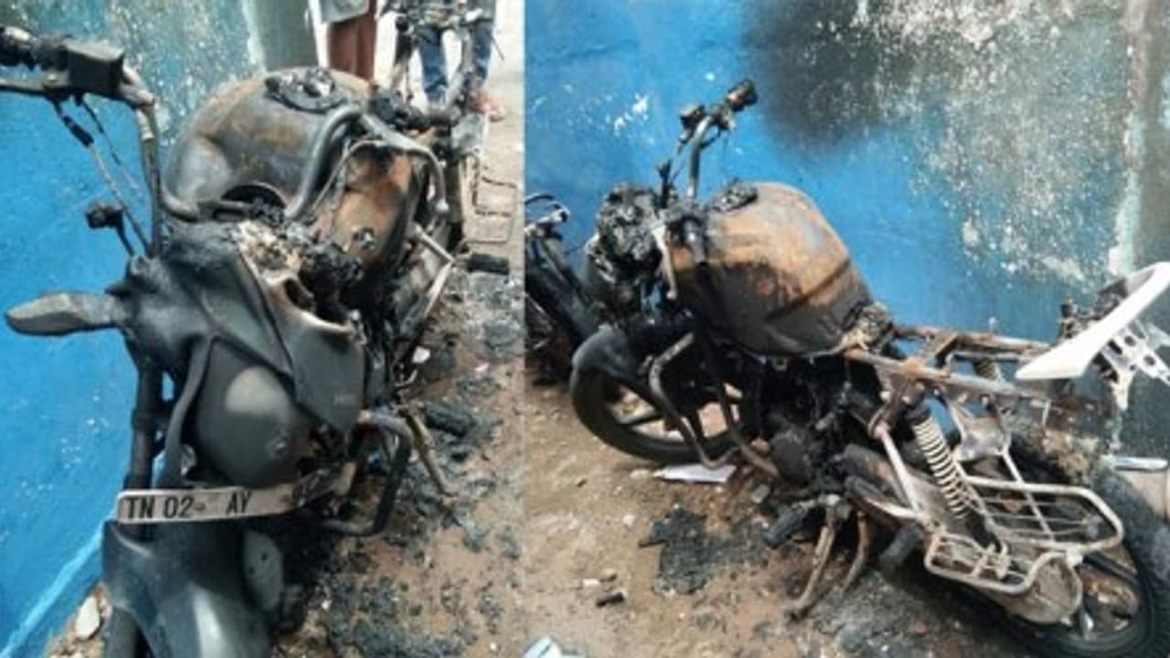 இதனையடுத்து, இருசக்கர வாகனங்கள் எரிந்தது குறித்து போலீசில் புகார் கூறினர்.