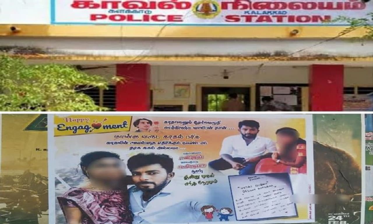 காதலிக்கு வேறு ஒரு இடத்தில் திருமணம் நிச்சயிக்கப்பட்ட ஆத்திரத்தில் விஜய்ரூபன் என்பவர் காதலியுடம் எடுத்த புகைப்படத்தை போஸ்டரில் அச்சிட்டு ஊர் முழுவதும் ஒட்டி தனது எதிர்ப்பை வெளிப்படுத்திய சம்பவம் பெரும் பரபரப்பை ஏற்படுத்தி உள்ளது. நெல்லை மாவட்டம் களக்காடு அருகே உள்ள மஞ்சுவிளையை சேர்ந்தவர் ஜெயராஜ். இவருடைய மகன் விஜய்ரூபன். இவர் களக்காடு பகுதியில் லவ் பேர்ட்ஸ் குருவிகள் விற்பனை செய்யும் கடை நடத்தி வருகிறார். இவர் தனது தூரத்து உறவினரான மேலபத்தை பகுதியை சேர்ந்த கிருபா என்பவரை கடந்த 4 ஆண்டுகளாக காதலித்து வந்துள்ளார். இருவரும் காதலித்து வந்த நிலையில் கிருபாவின் வீட்டிற்கு சென்று விஜய்ரூபன் கிருபாவை பெண் கேட்டதாக கூறப்படுகிறது.