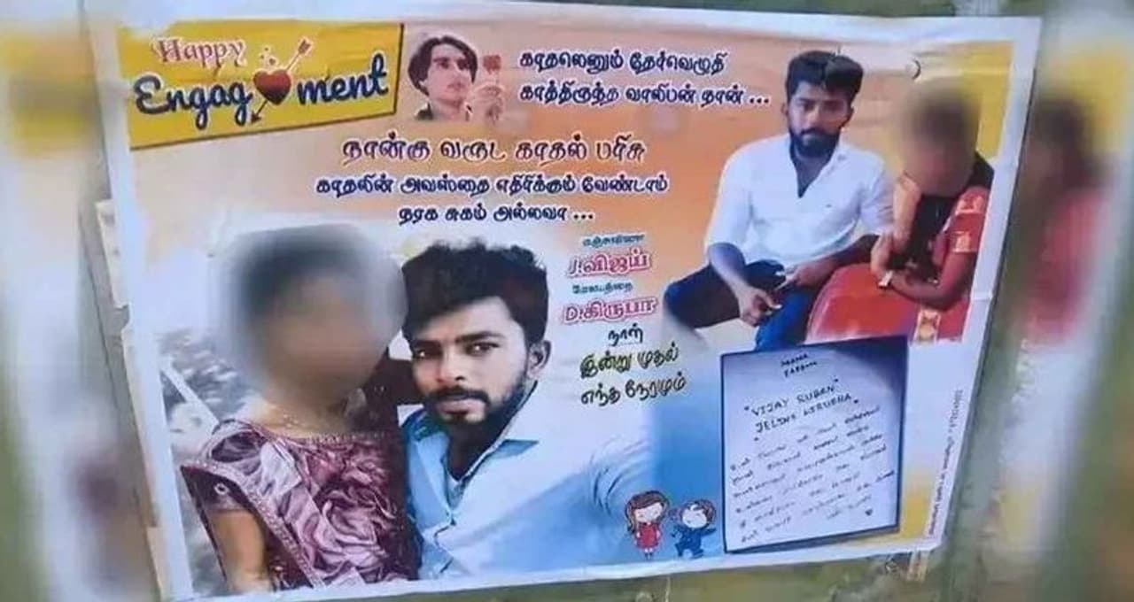 காதலிக்கு வேறு ஒரு இடத்தில் திருமணம் நிச்சயிக்கப்பட்ட ஆத்திரத்தில் விஜய்ரூபன் என்பவர் காதலியுடம் எடுத்த புகைப்படத்தை போஸ்டரில் அச்சிட்டு ஊர் முழுவதும் ஒட்டி தனது எதிர்ப்பை வெளிப்படுத்திய சம்பவம் பெரும் பரபரப்பை ஏற்படுத்தி உள்ளது.