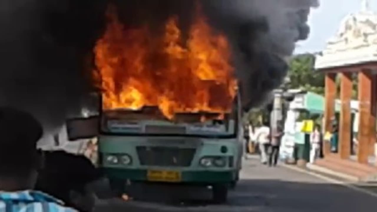 ஆனாலும் பேருந்து முற்றிலும் எரிந்து சாம்பலானது.நல்ல வேளையாக பேருந்தில் பயணம் செய்த பயணிகள் யாருக்கும் காயம் ஏற்படவில்லை..
