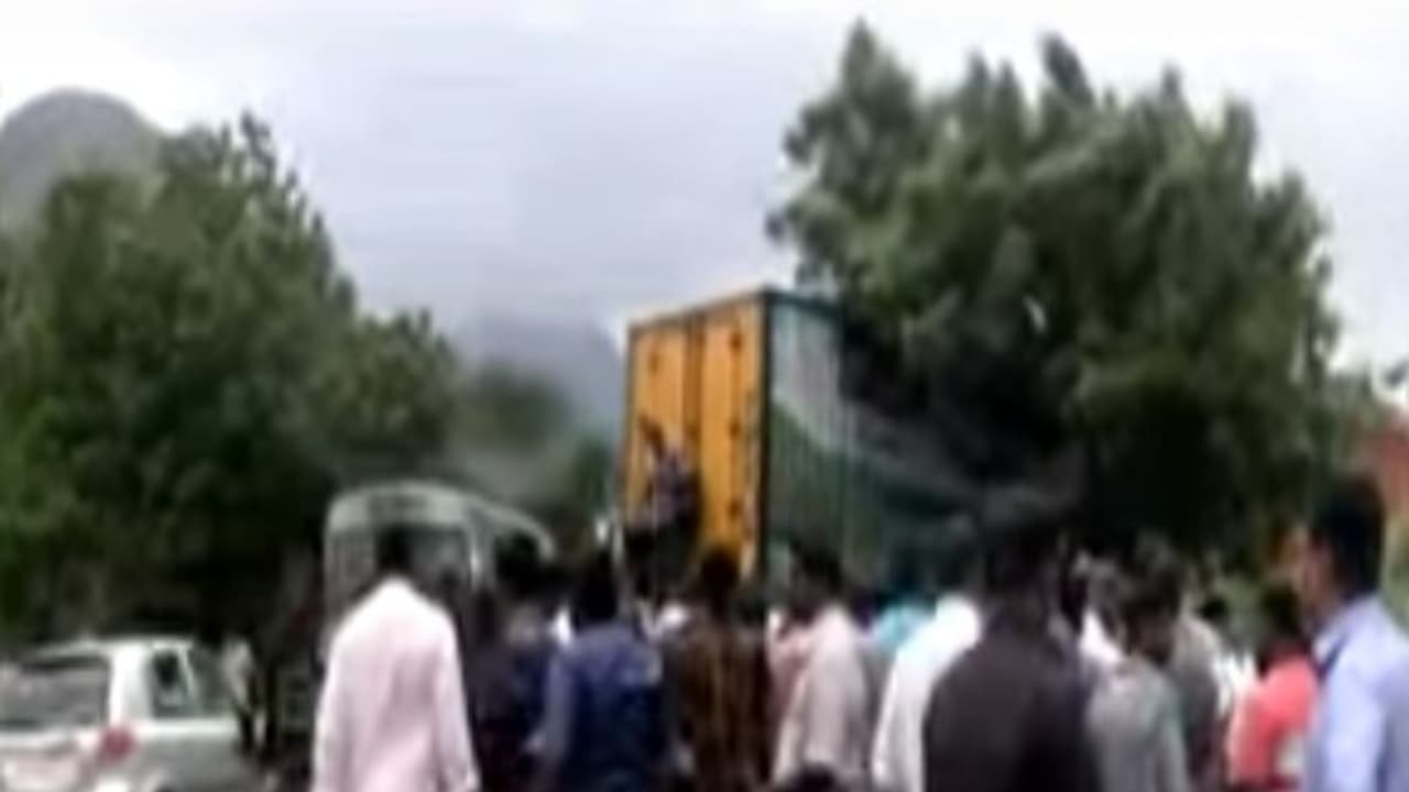 இதில், காரில் பயணம் செய்து 2 பேர் சம்பவ இடத்திலேயே பரிதாபமாக உயிரிழந்தனர். மேலும் 3 பேர் படுகாயமடைந்தனர்.