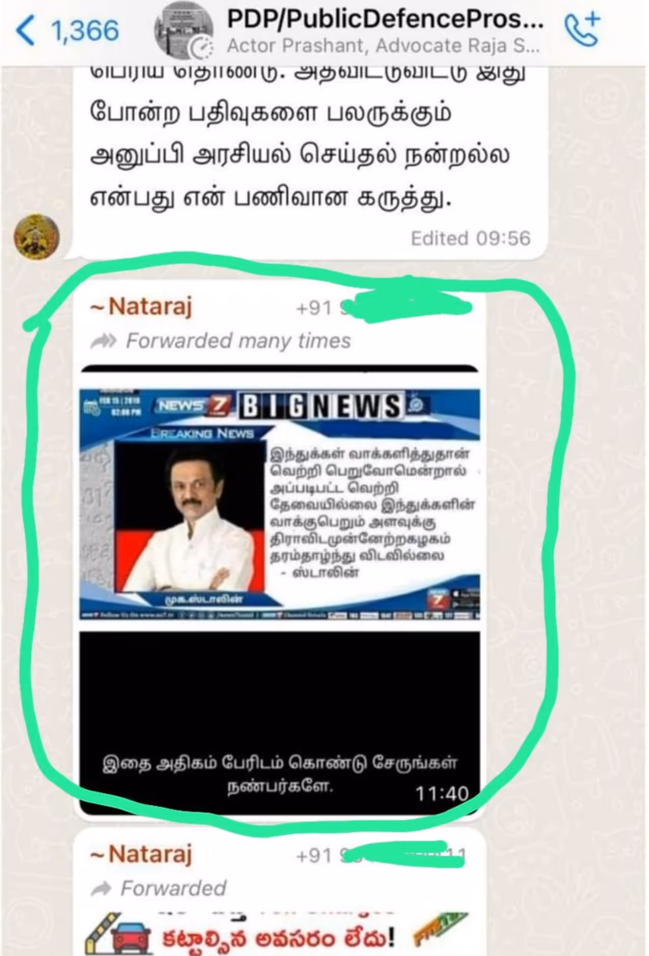 அதில், இந்துக்கள் வாக்களித்துதான் வெற்றி பெற்வோமென்றால் அப்படிப்பட்ட வெற்றி தேவையில்லை. இந்துக்கள் வாக்கு பெறும் அளவிற்கு திமுக தரம் தாழ்ந்து போகவில்லை என முதலமைச்சர் ஸ்டாலின் கூறியதாக தகவல் இடம்பெற்றுள்ளது. போலியான சித்தரிக்கப்பட்ட செய்தியை அணைவருக்கும் பகிரும் படி தெரிவித்துள்ளார். இதனை தொடர்ந்து தான் முன்னாள் டிஜிபி நடராஜ் மீது வழக்கு பதிவு செய்யப்பட இருப்பதாக தகவல் வெளியாகியுள்ளது.